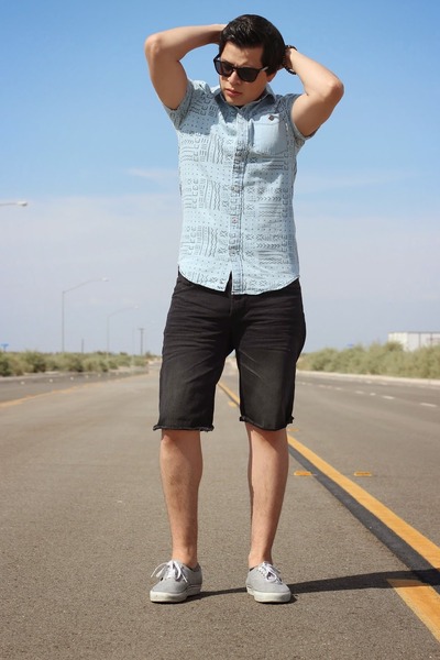 Men S Sky Blue Cotton Blend Pacsun Shirts Black Denim American Eagle Shorts To The Beach By Thecasualboardwalk Chictopia